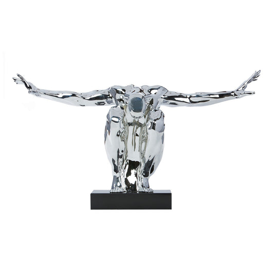 Fluid Abstract 59" Tall Floor Sculpture // Chrome with Black Stand