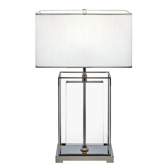 Square Crystal Double Crown Table Lamp // Chrome