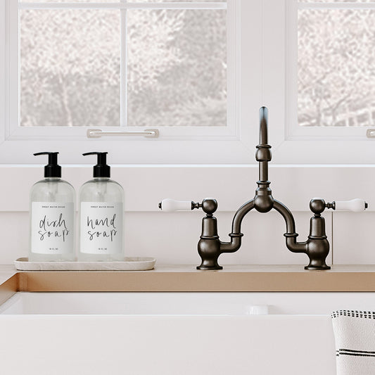 16oz Amber Glass Countertop Dispenser Set of 2 - White Label