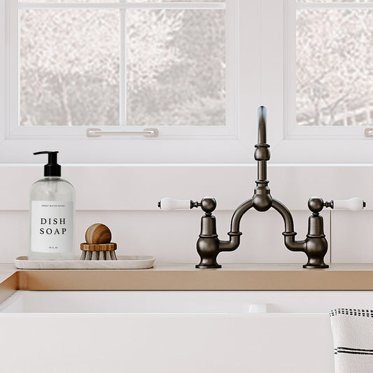 16oz Amber Glass Dish Soap Dispenser - White Text Label