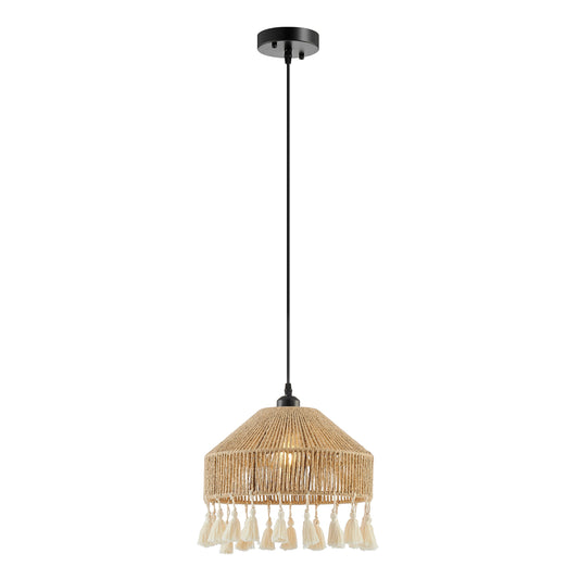 Iron and Ropes 1 Light 11" Diam Pendant // Black and Beige