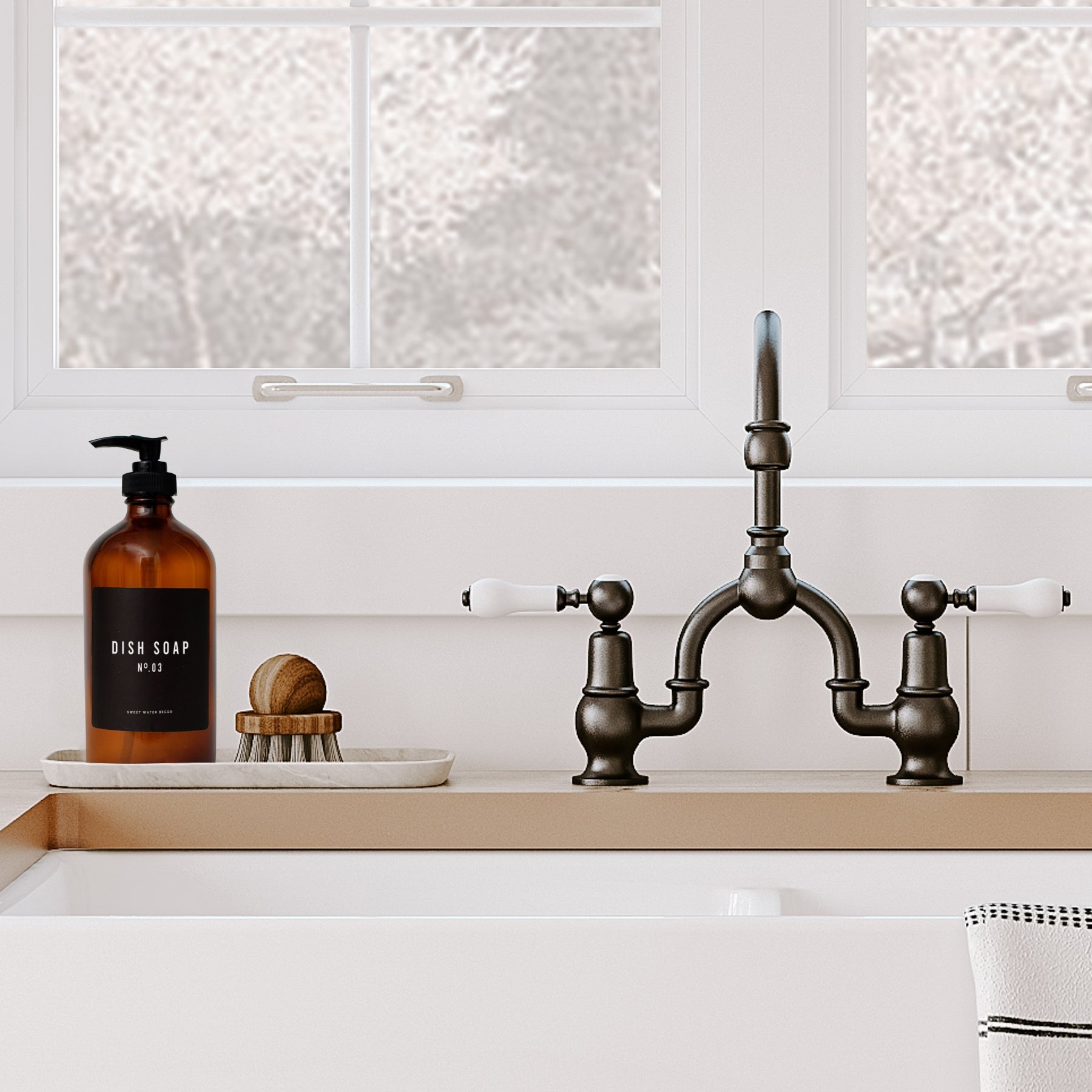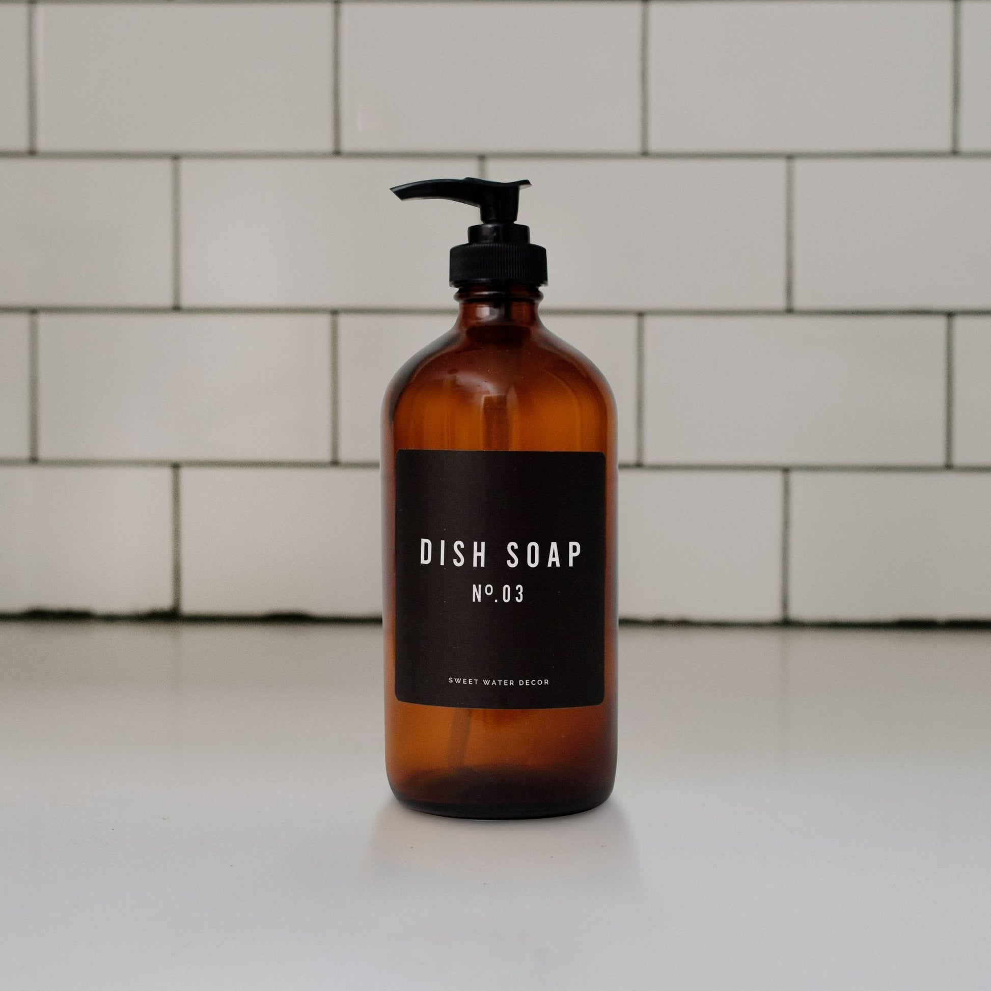 16oz Amber Glass Dish Soap Dispenser - Black Label