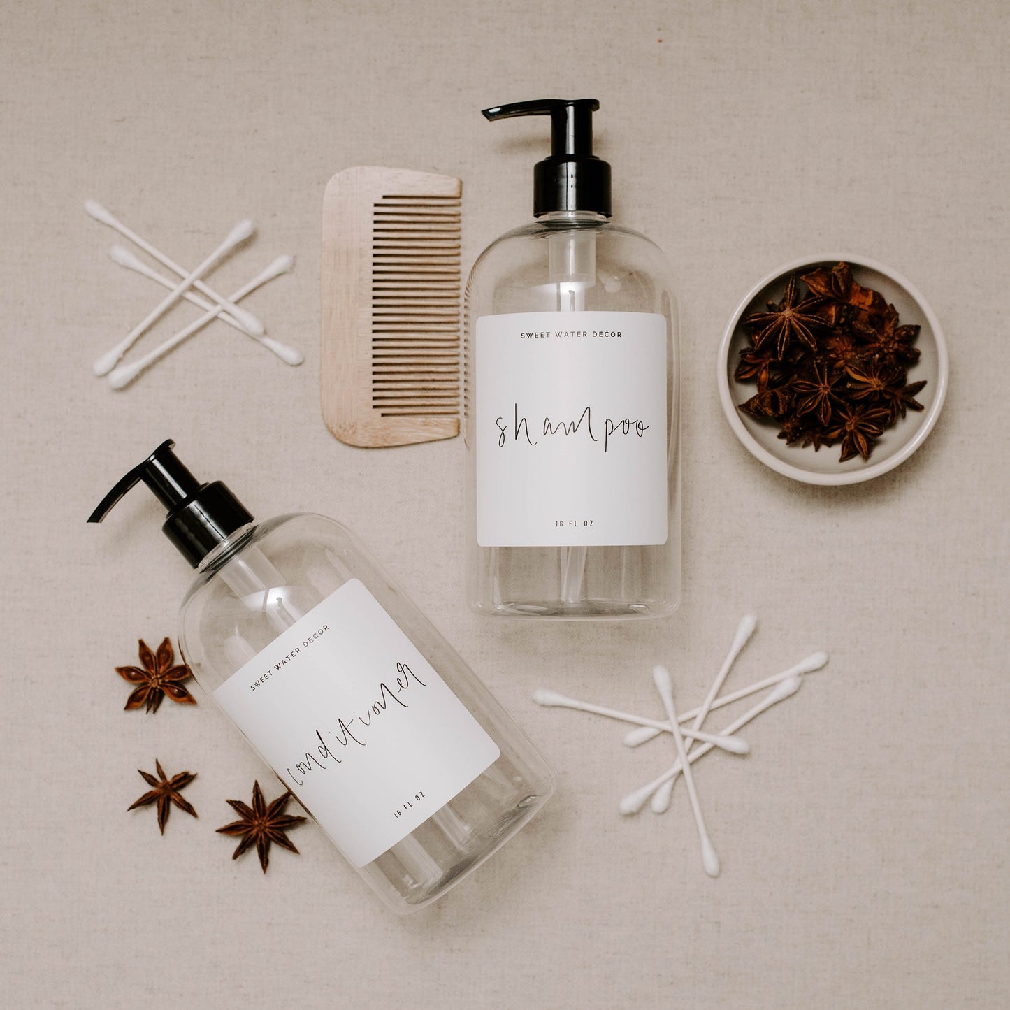 16oz Clear Plastic Bath + Shower Dispenser Set of 2 - White Label