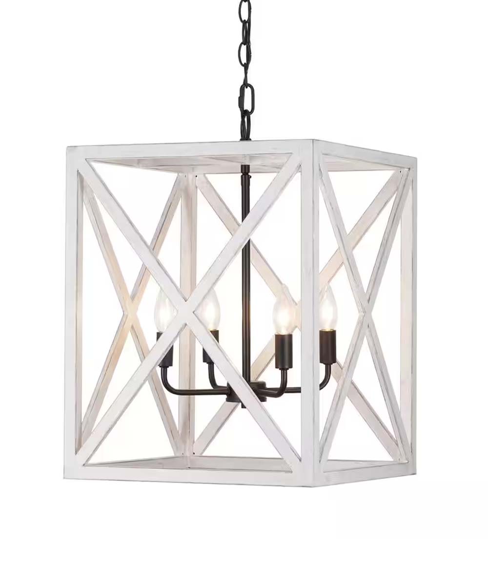 Transform your home with the Alsy 16"W 4-Light Distressed White Caged Large Pendant Chandelier Light Fixture. Its elegant design, versatile style, and practical features make it a must-have for any home decor enthusiast. Don't miss out on this opportunity to enhance your living space with a piece that combines beauty and function. Order now and experience the perfect blend of style and illumination.