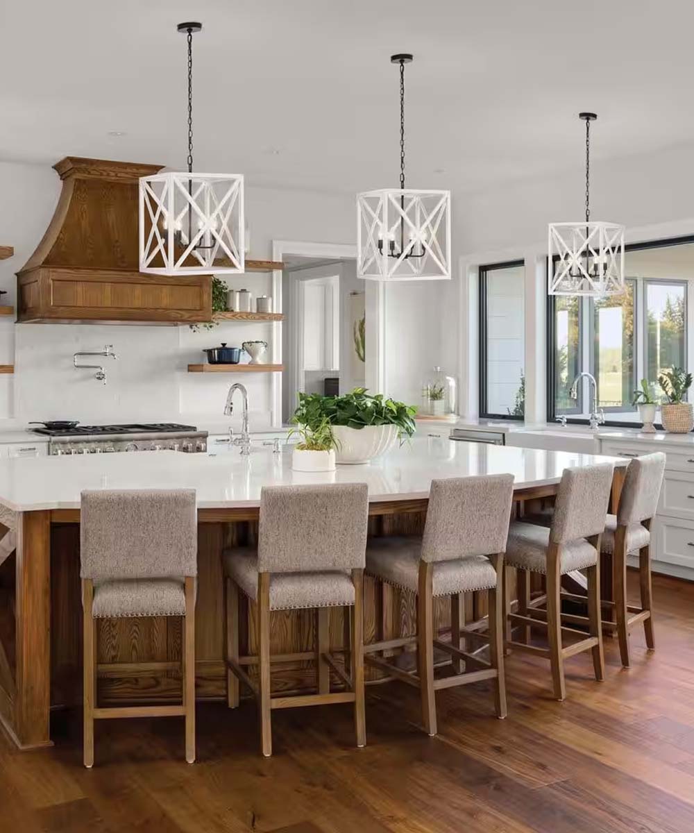 The Alsy 4-Light Caged Pendant is versatile and can be used in various rooms throughout your home. It is an excellent choice for a foyer, where it can make a grand first impression. In the dining room, it provides ample lighting and a touch of elegance, making family dinners and gatherings even more special. Over a kitchen island, this chandelier adds both functionality and style, illuminating your workspace while enhancing the overall decor. Due to its substantial size, it is best suited for large-scale kitchens with high ceilings.