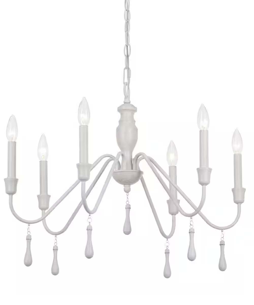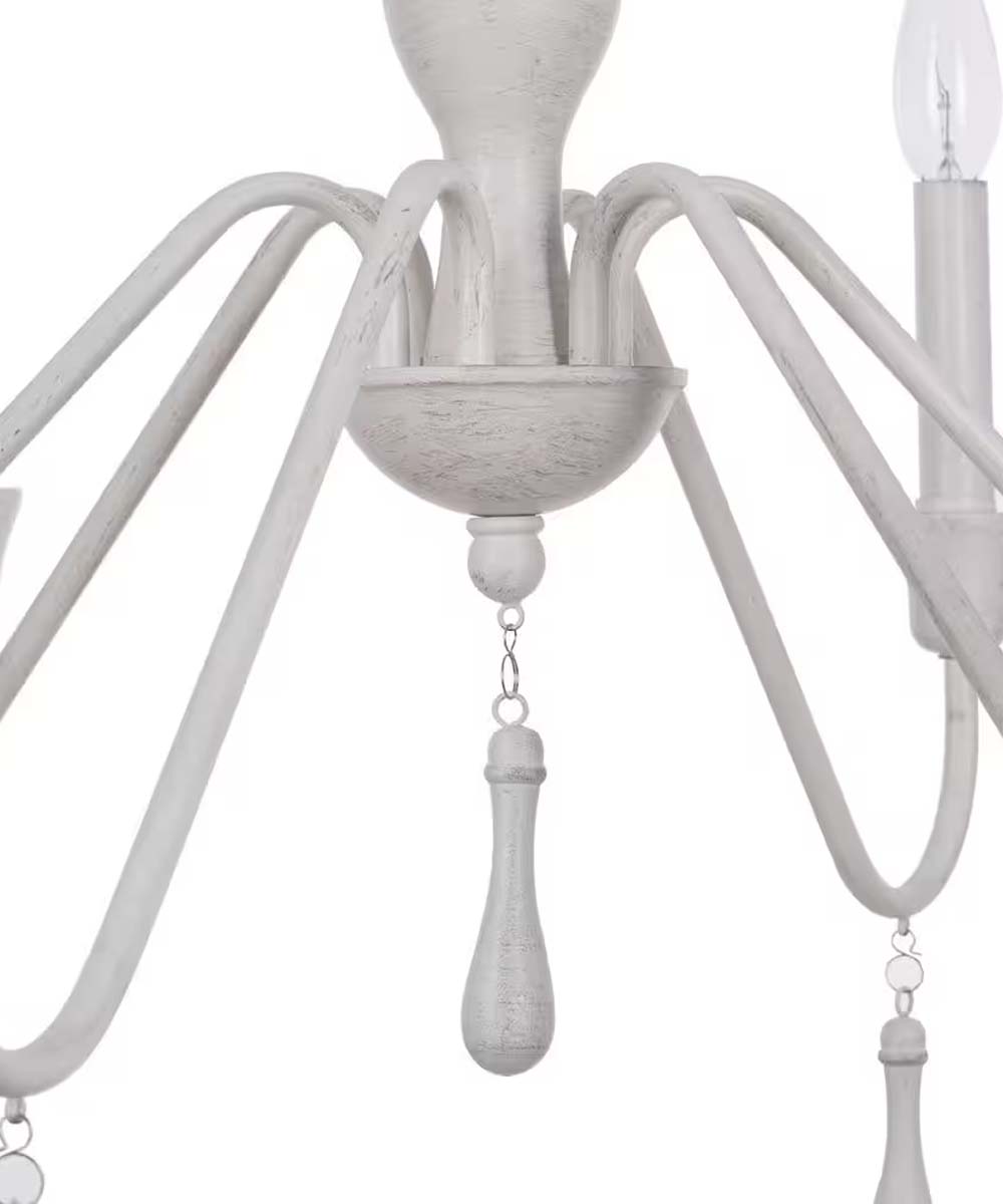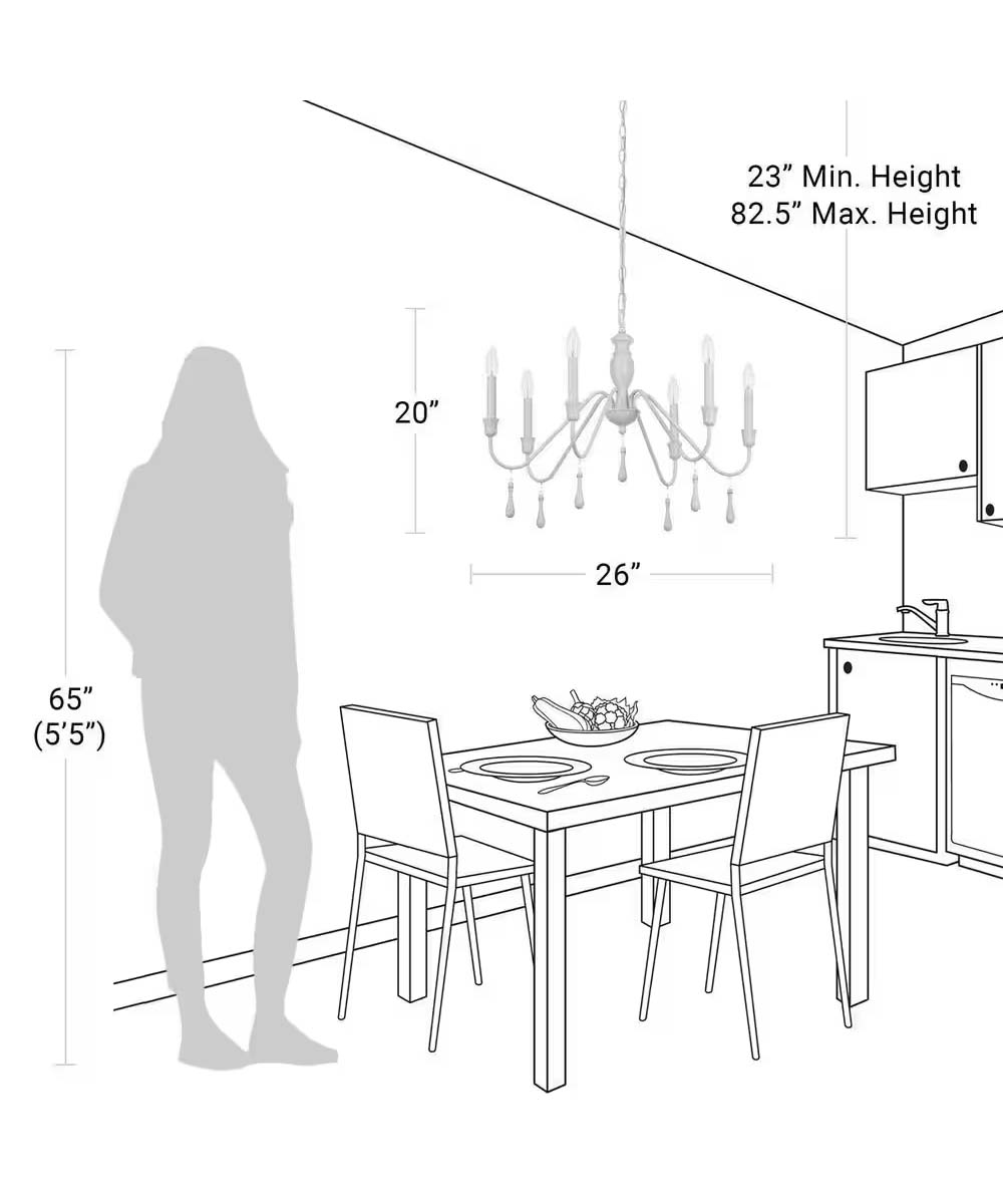 This versatile chandelier is perfect for a variety of rooms, including dining rooms, kitchens, living rooms, bedrooms, and even bathrooms. Its light and airy style complements modern farmhouse, Shabby Chic, cottage, country, rustic, and traditional decor styles. Whether you hang it above a dining table, in the center of a living room, or as a focal point in a bedroom, this chandelier will provide both functional lighting and a beautiful decorative element.