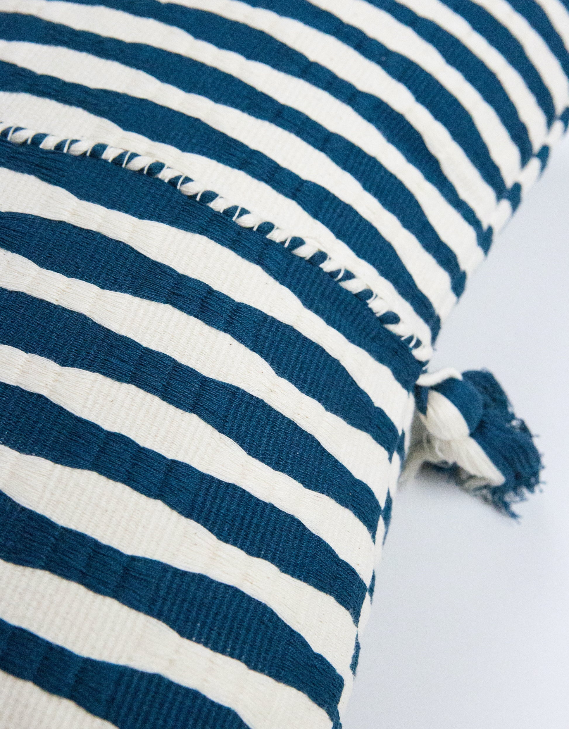 Our easiest, best selling style, in a dark teal blue and off white stripe.