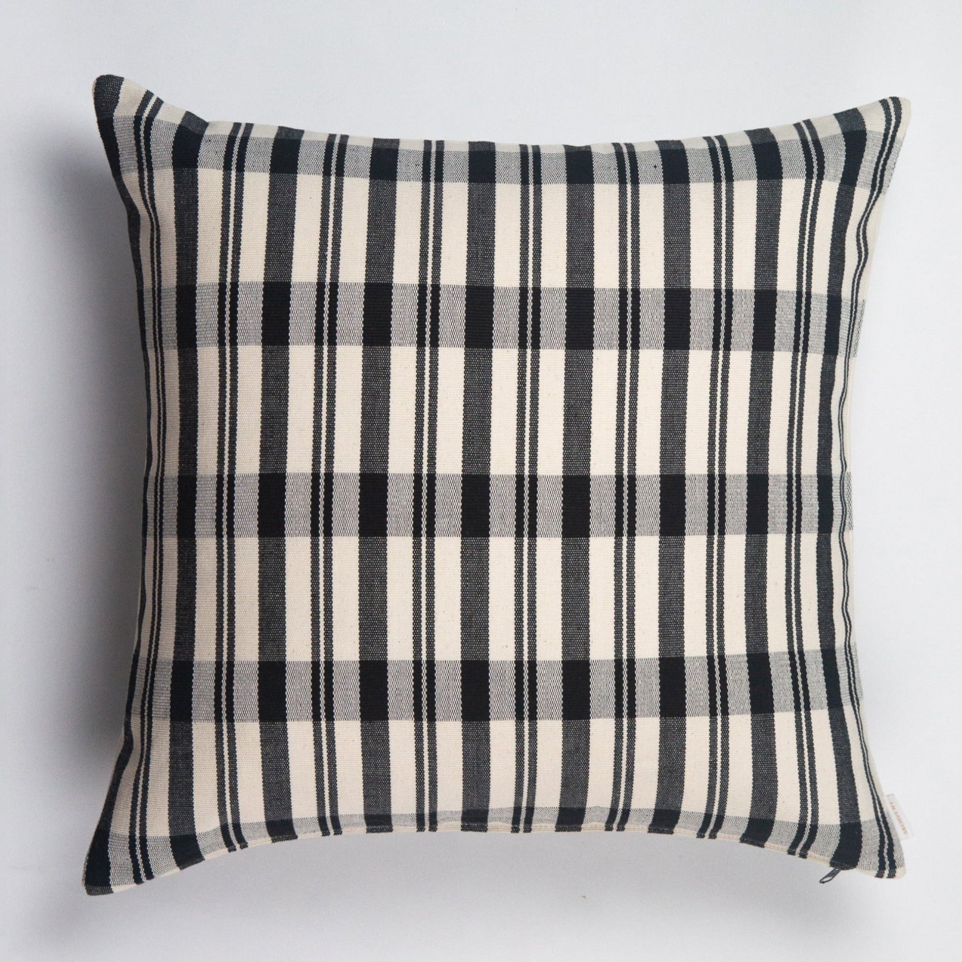 Cecilia Black and Ivory Striped Plaid Pillow - 20" x 20"