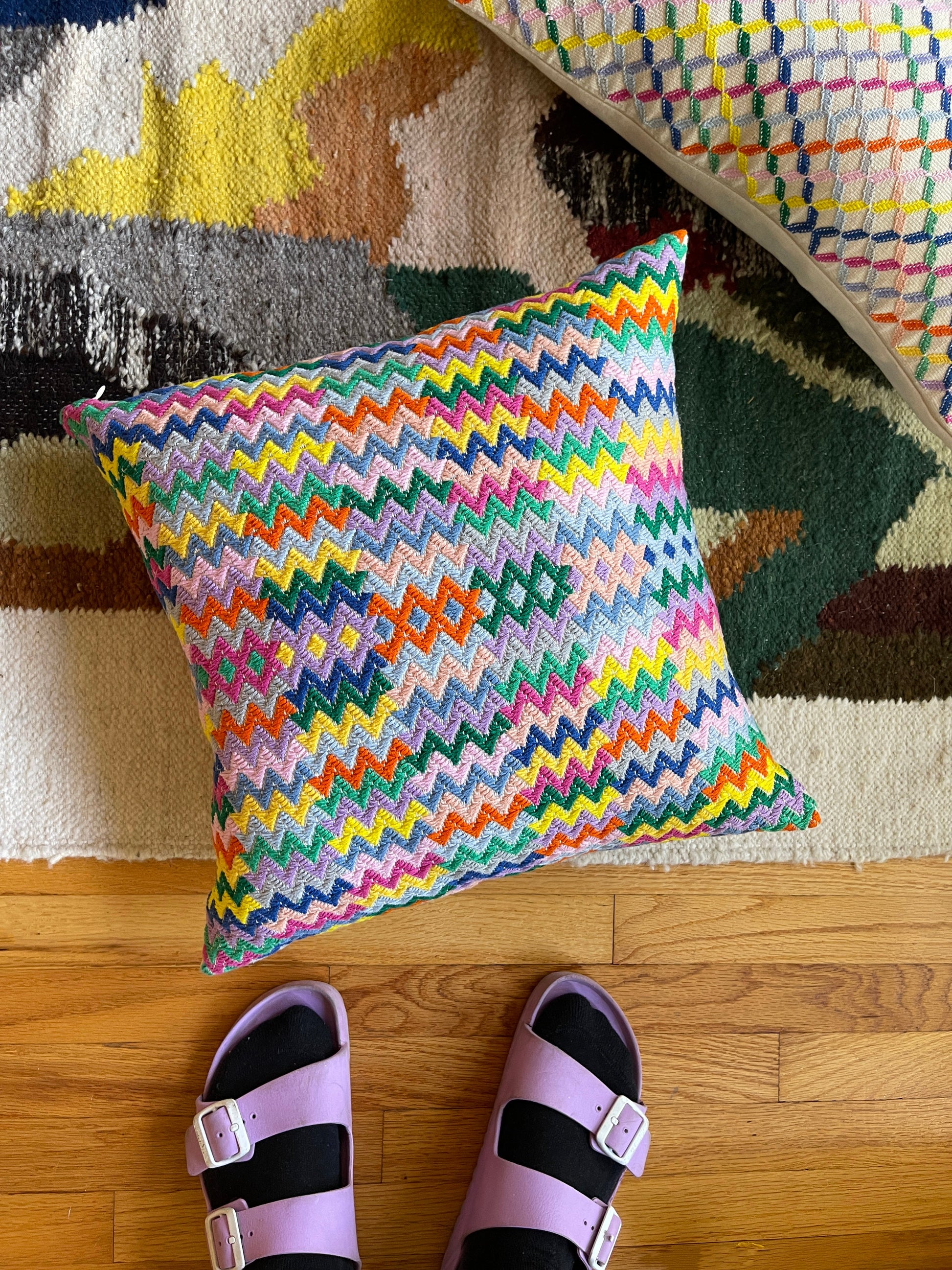 Our hand-brocaded woven pillows in a rainbow palette will be a cheerful addition to any space. These pillows depict an assortment of traditional textile patterns from Cotzal, Guatemala.