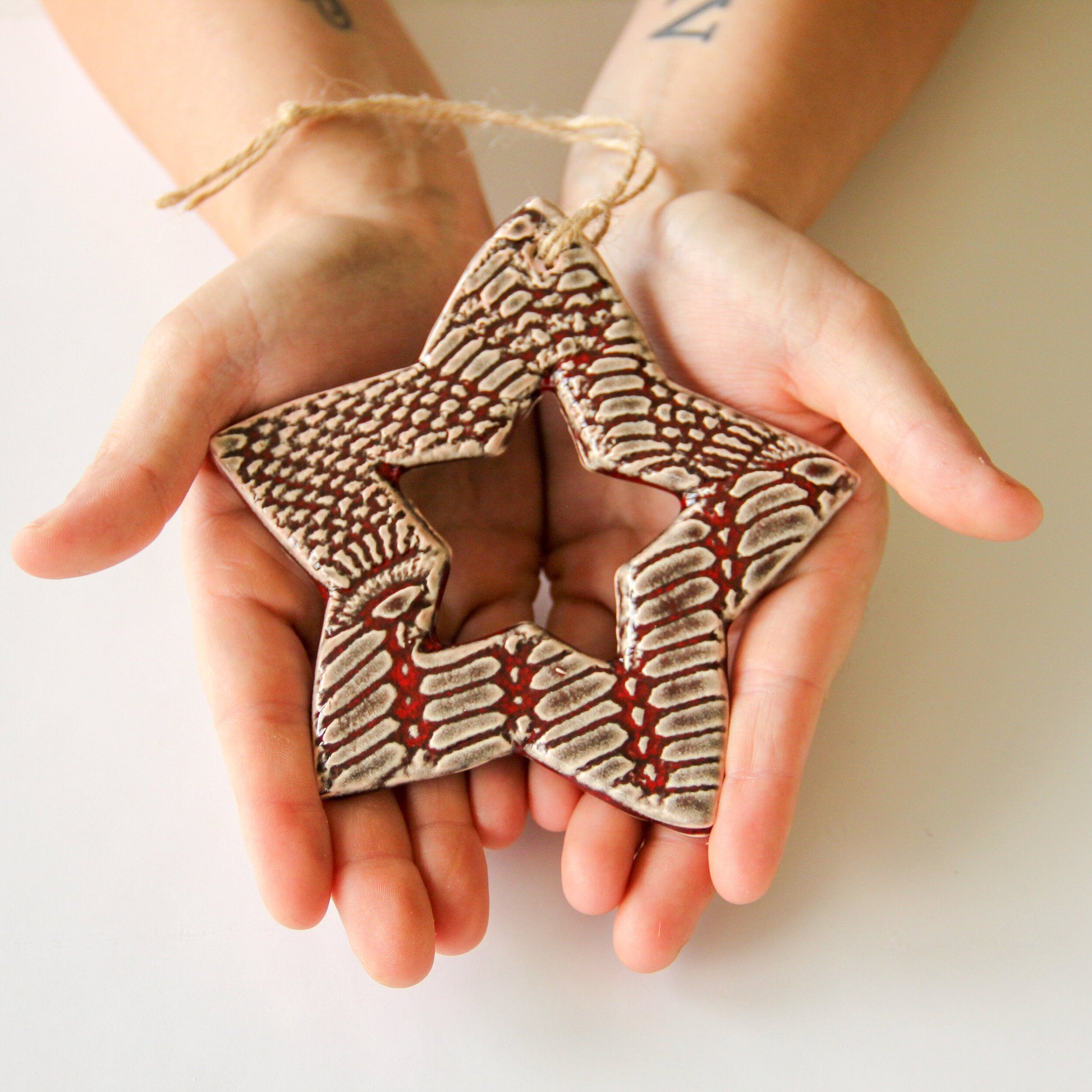 Celebrate this Christmas season with this precious cutout star ornament, perfect to hang on the Christmas tree, tie to a gift, or give to your loved ones. These precious, handmade ornaments are pressed with lace and have a cutout star in the middle. These are sure to make you and your loved ones smile this Christmas season.
