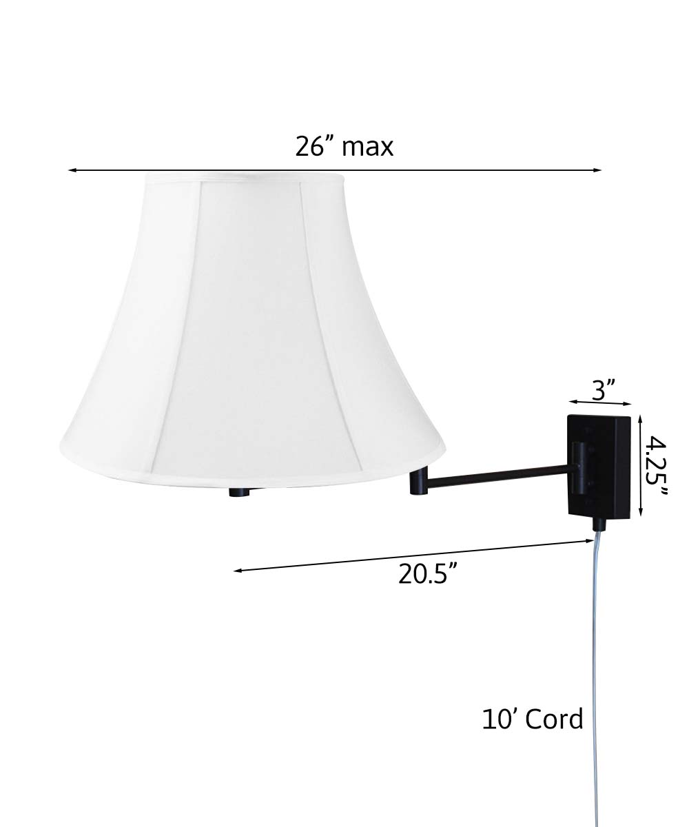 - DIMMABLE LIGHT - Includes 10' clear cord, which plugs in to your standard outlet. Rotary Dimmer on/off switch located on socket for easy access. Standard sockets accommodate 15 Watt max standard-base LED bulb. Light can be extended from 4" to 20" away from the wall.