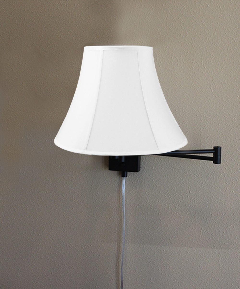 - COMPLETE KIT - Everything is included: plug-in wall light with standard socket, switch, lampshade, harp, finial and 10' clear cord, designed to blend in with any wall. Just add bulb (LED recommended, but not included).