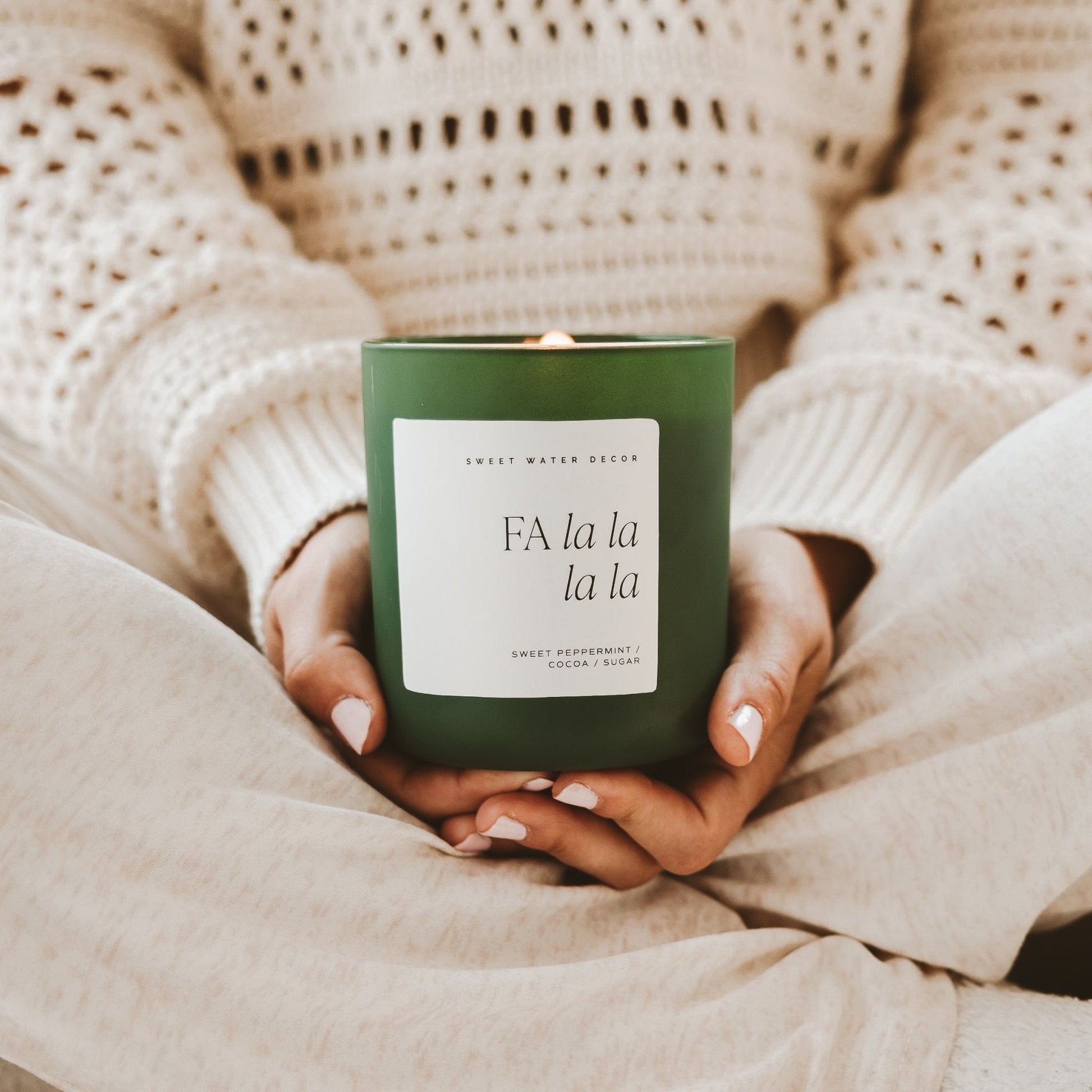 Our Fa La La La La soy candle smells just like a fresh cup of hot chocolate mixed with a candy cane! The best scents of the season blended into this perfectly balanced scent. It's the perfect Christmas gift for all the mint chocolate lovers in your life!