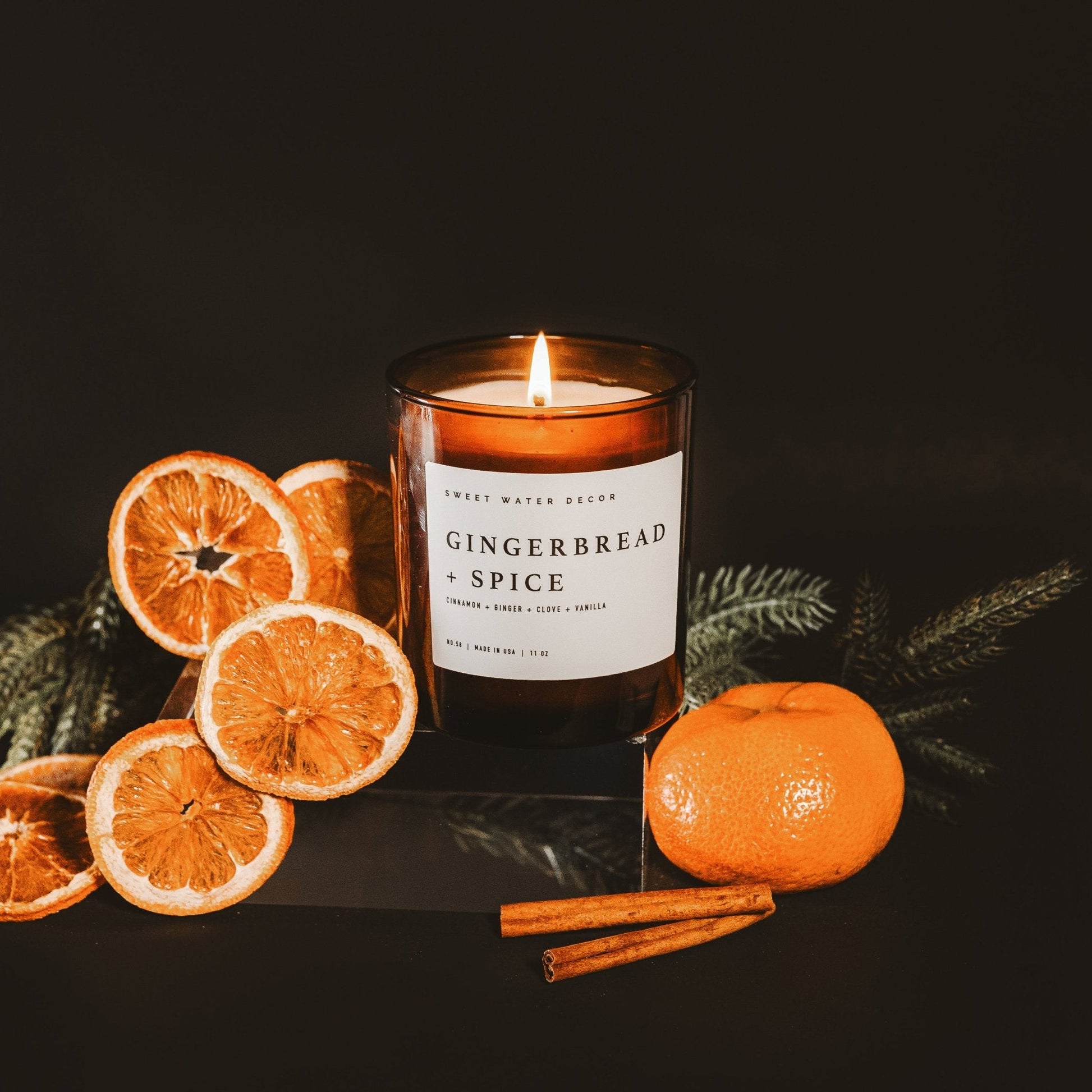 Our Gingerbread and Spice soy candle has the warm and comforting scent of freshly baked gingerbread cookies that reminds you of home. This festive holiday candle combines the sweet aroma of pure vanilla and caramel with bright citrus and warm spices. Fresh, crisp notes of orange and lemon mingle with rich nutmeg and spicy cloves to create a nostalgic fragrance that is perfect for the holiday season.