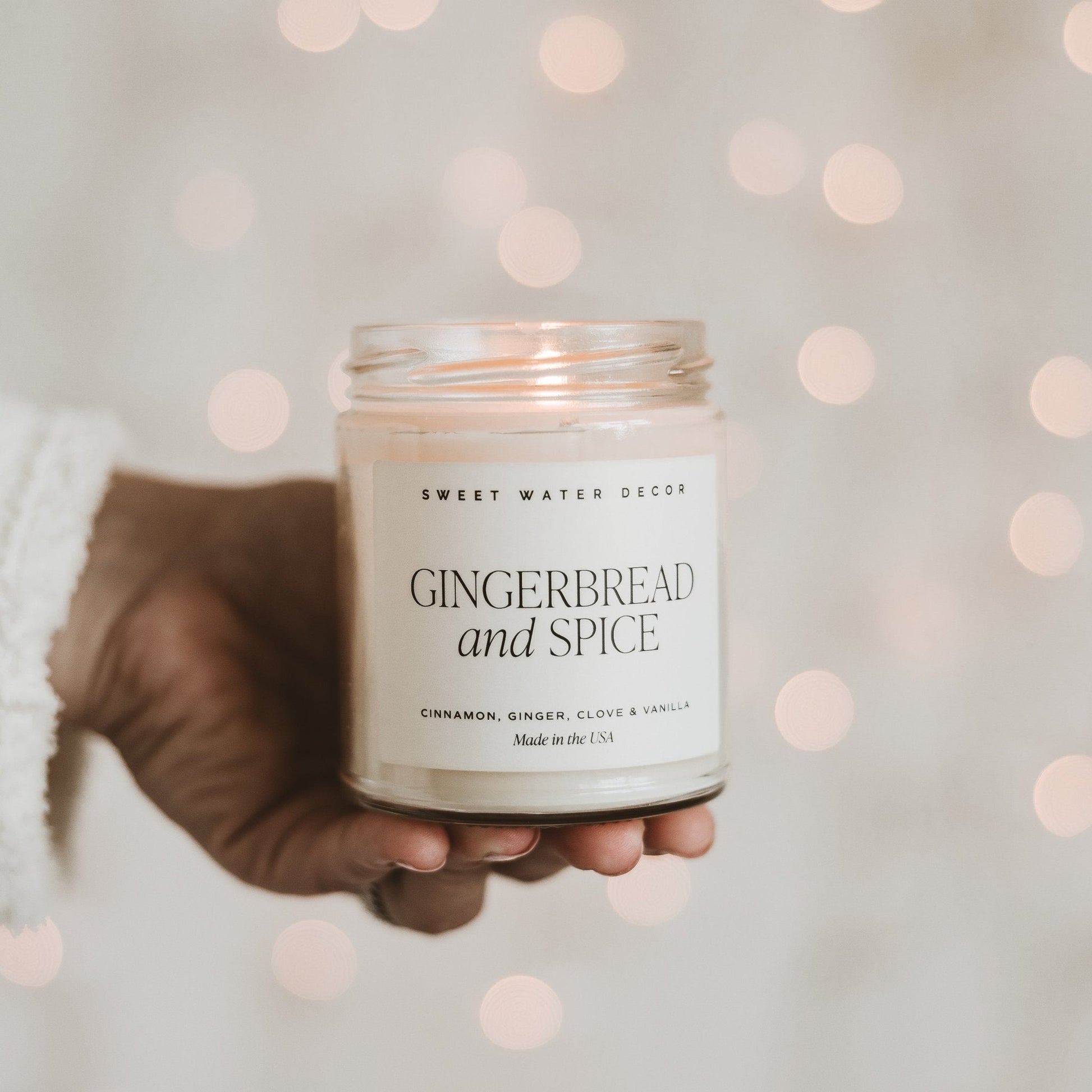 Our Gingerbread and Spice soy candle has the warm and comforting scent of freshly baked gingerbread cookies that reminds you of home. This festive holiday candle combines the sweet aroma of pure vanilla and caramel with bright citrus and warm spices. Fresh, crisp notes of orange and lemon mingle with rich nutmeg and spicy cloves to create a nostalgic fragrance that is perfect for the holiday season.