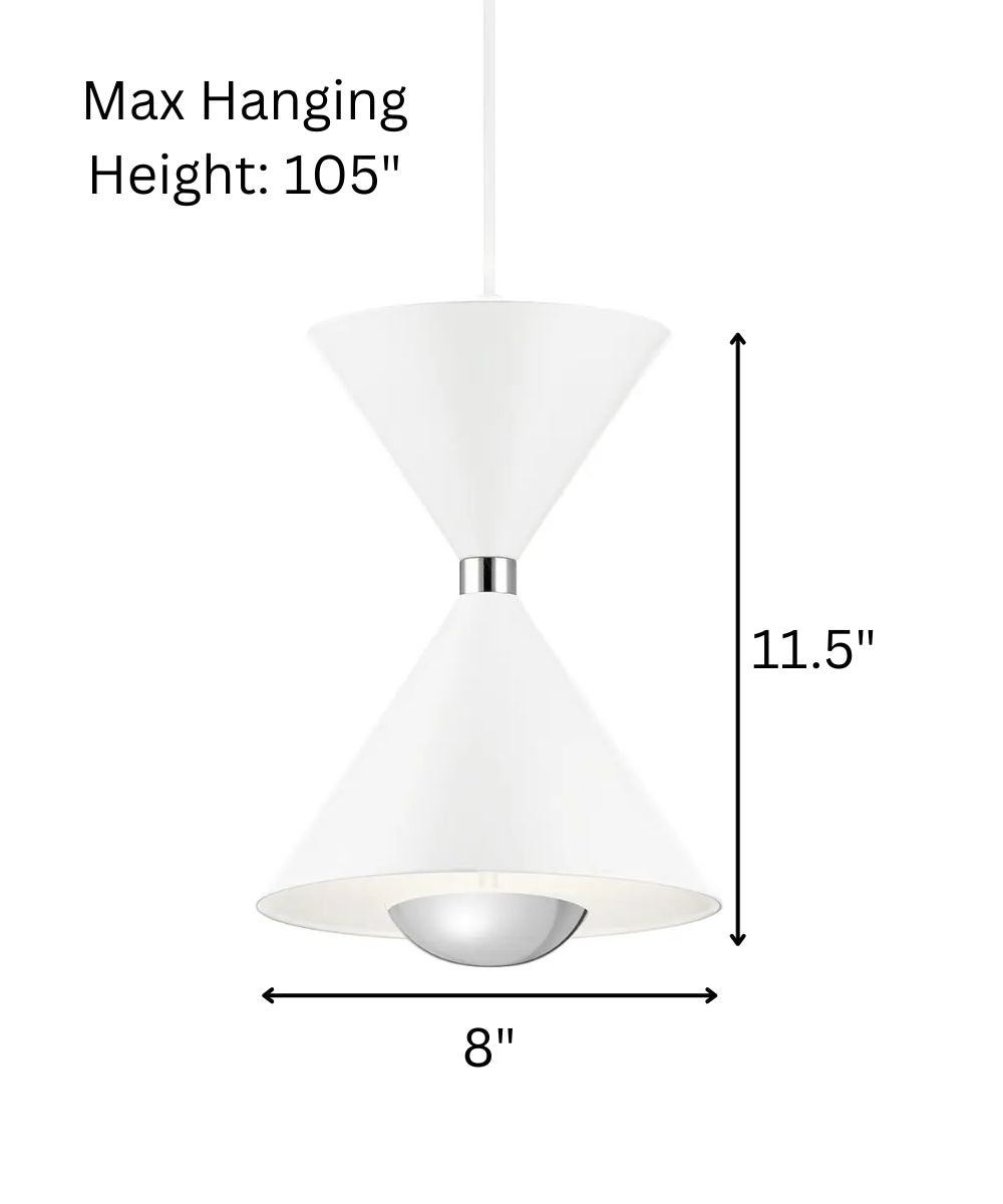 - FINISH: Featuring a matte white finish and a stylish hourglass-shaped metal shade. This modern hourglass fixture offers a clean, minimalist design that adds a touch of elegance to any space. Perfect for kitchens, dining areas, or living rooms, it provides focused, ambient lighting while complementing contemporary décor. The compact size and refined aesthetic make it ideal for both small and large spaces.
