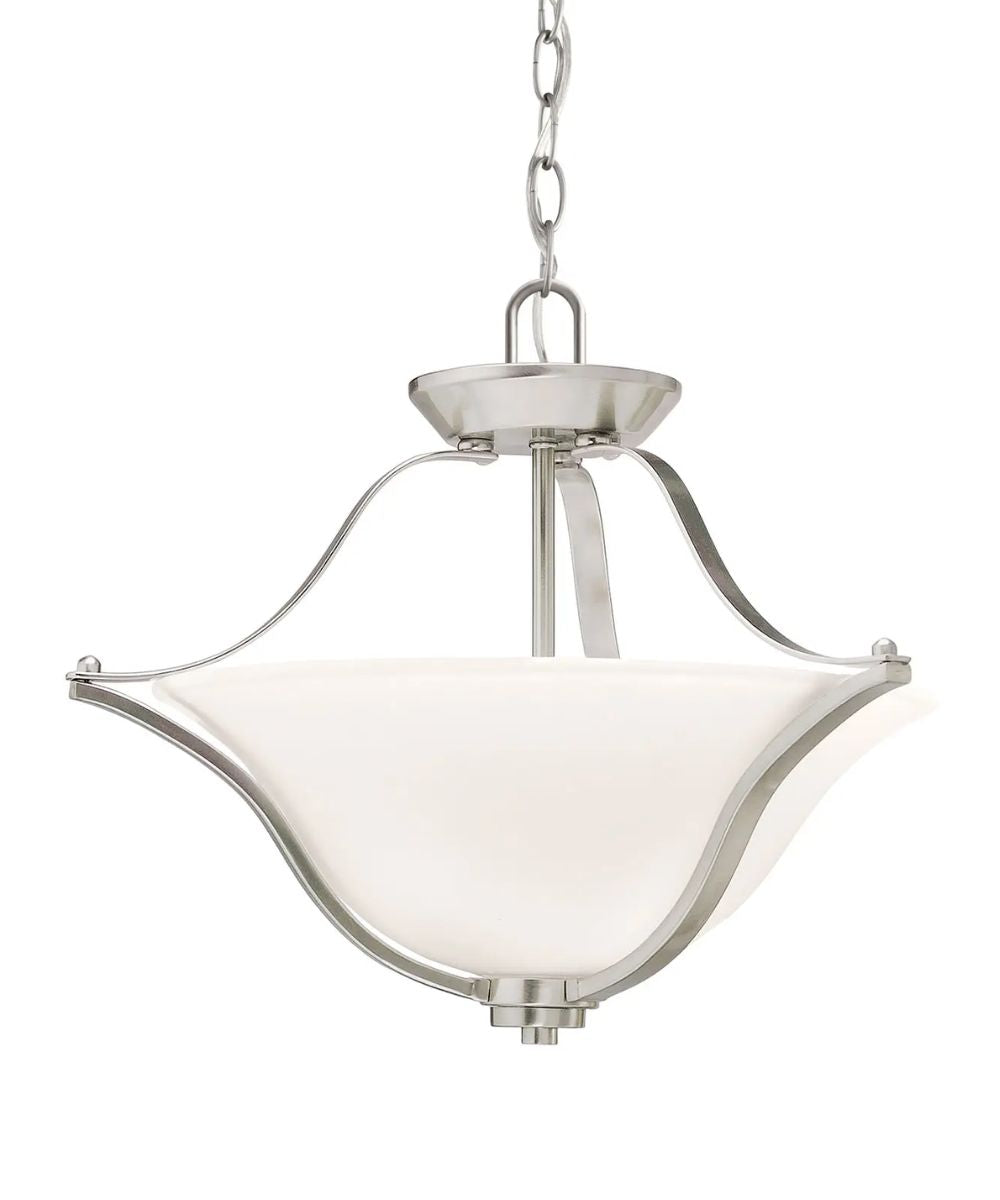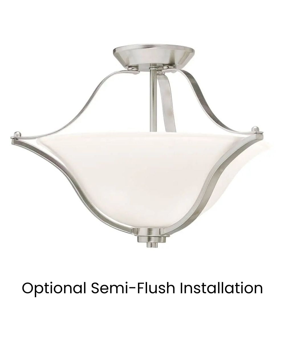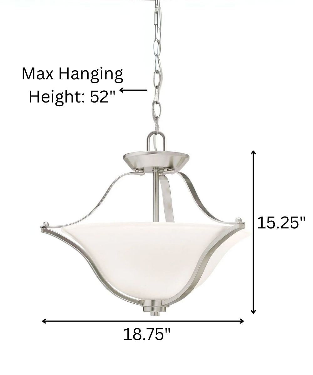 Enhance your home with the timeless elegance and versatile functionality of the Langford 19"W 2-Light Brushed Nickel Pendant/Semi-Flush Mount Light by Kichler. Its classic design, efficient lighting, and easy installation make it the perfect addition to any room. Don't miss out on this opportunity to elevate your home's decor and create a warm, inviting ambiance. Order now and experience the beauty and quality of Kichler lighting.