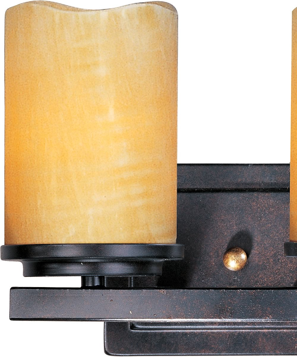 The Luminous 11" W 2-Light Bath Vanity Light Fixture by Maxim is a perfect blend of elegance and rustic charm. The simple, straight-line frame is fashioned in a minimalist style and finished in a stunning Rustic Ebony. This finish beautifully complements the Stone Candle Alabaster glass shades, which are carved out of solid stone, giving each shade a unique personality and character. The warm glow emitted from these shades creates an inviting ambiance, making this fixture a perfect addition to any bathroom.