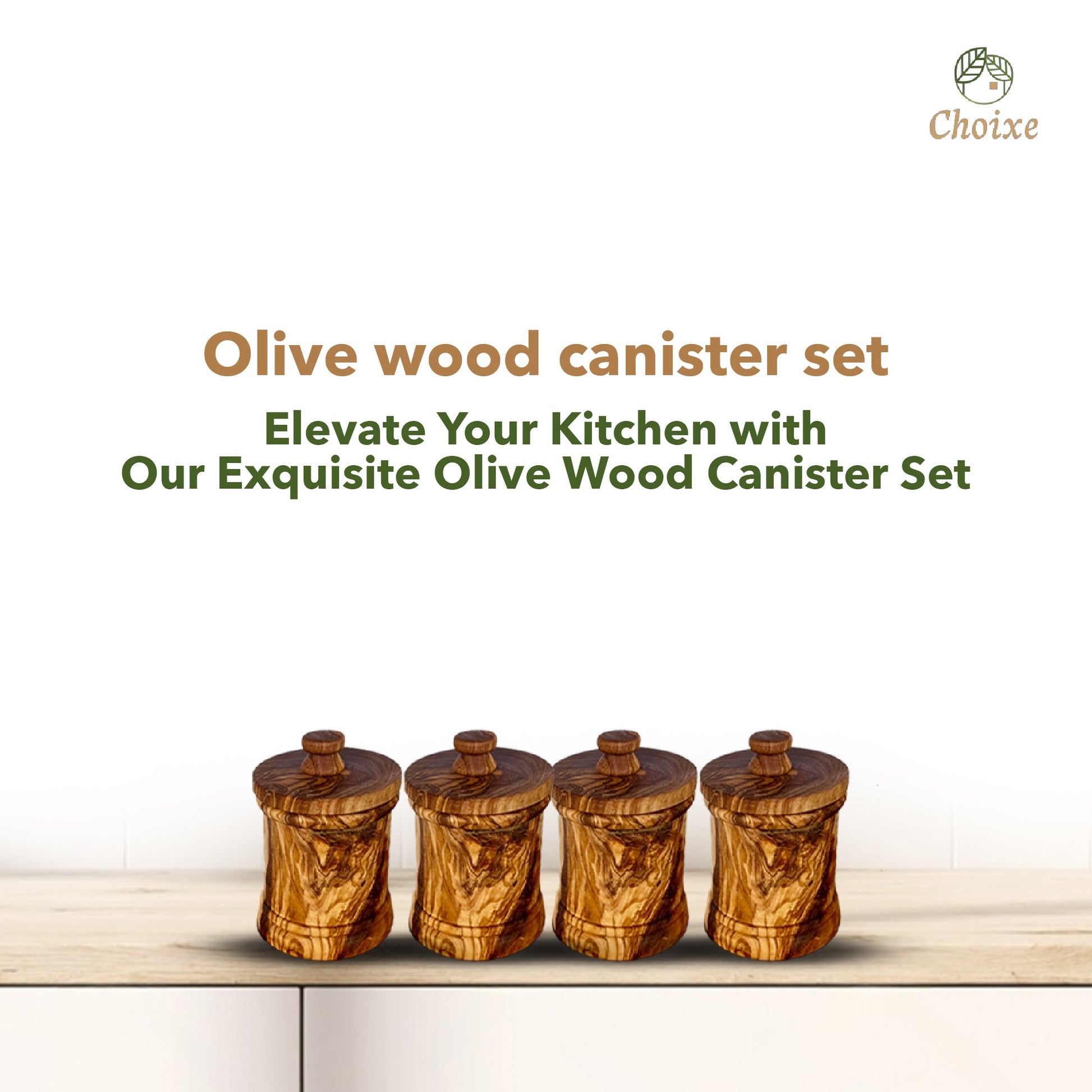 Elevate your kitchen decor and enhance your daily routine with this exquisite olive wood canister set.