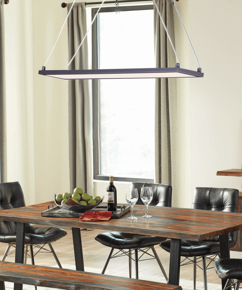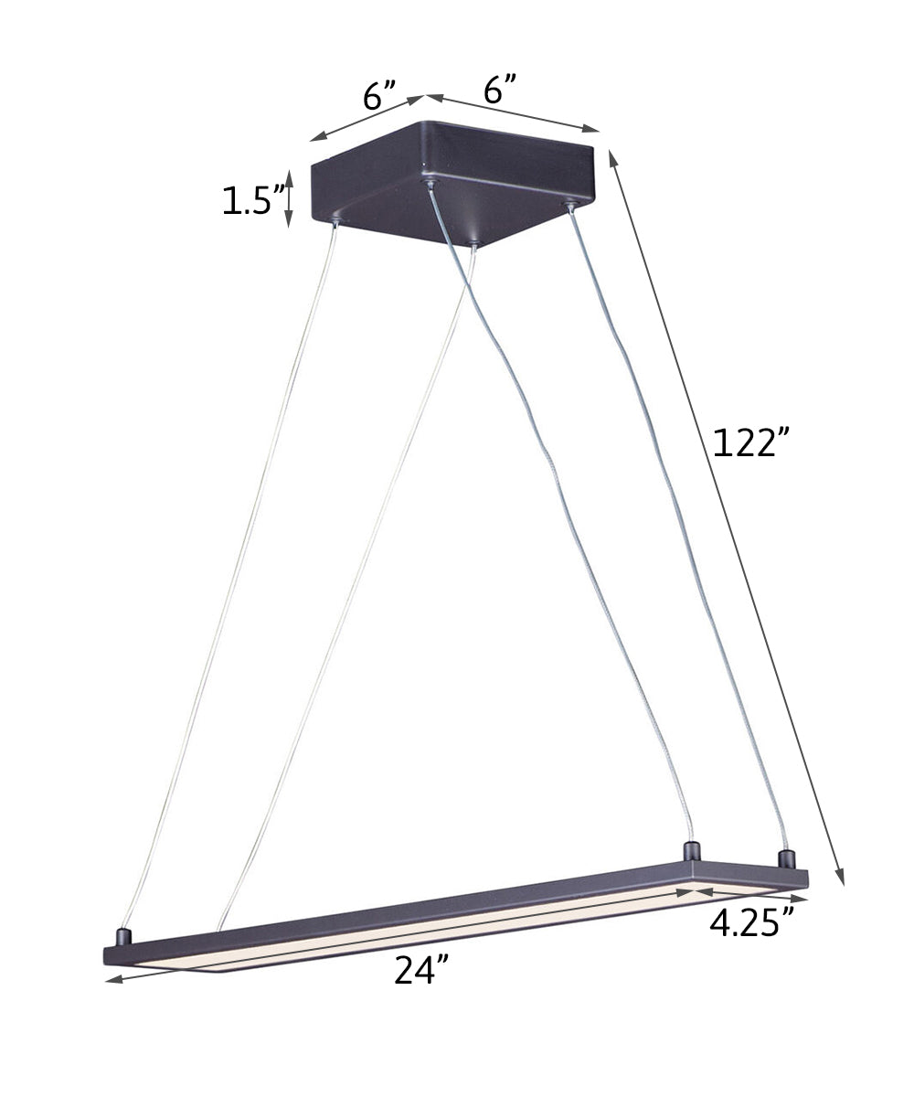 The Wafer LED Island Light Fixture is designed to enhance a variety of spaces. Its dimensions—0.5" in height, 4.25" in width, and 24" in length—make it a perfect fit for kitchen islands, dining tables, or any area where focused lighting is needed. The adjustable hanging height, ranging from a minimum of 5" to a maximum overall height of 122", ensures versatility in placement, accommodating different ceiling heights and room configurations. The fixture's clean lines and understated elegance make it suitable for modern, industrial, and transitional decor themes.