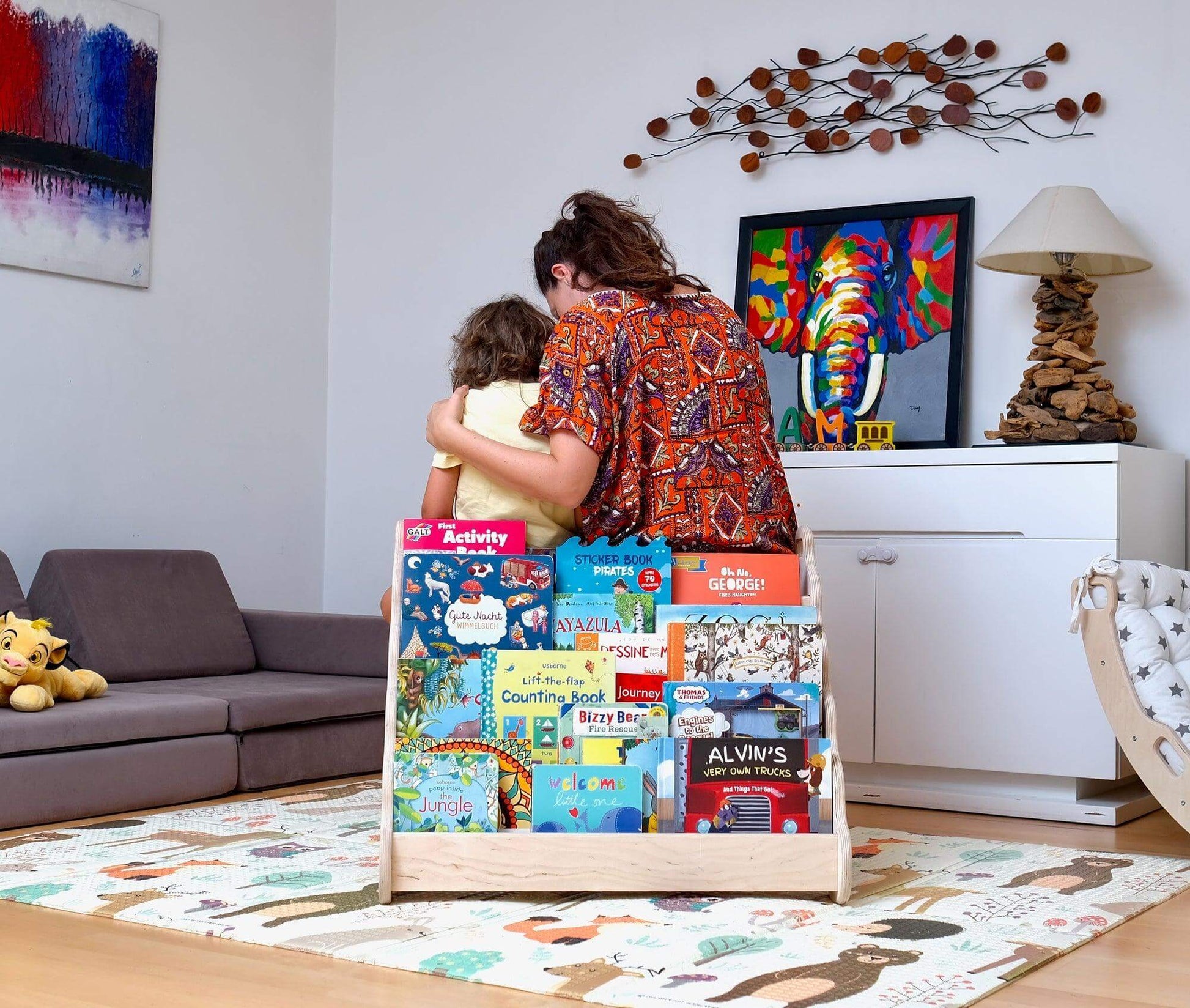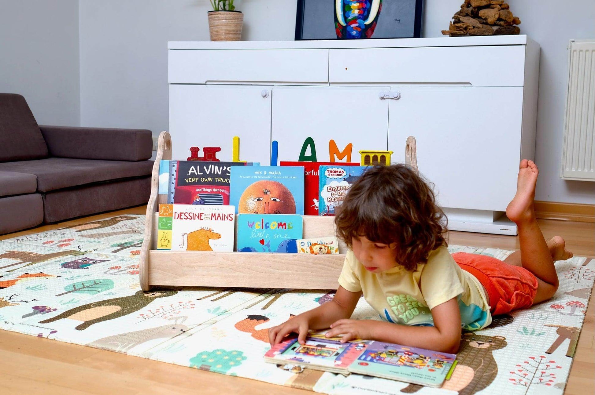 Thoughtfully designed: Our Montessori-inspired wooden bookshelf encourages your child's learning development.